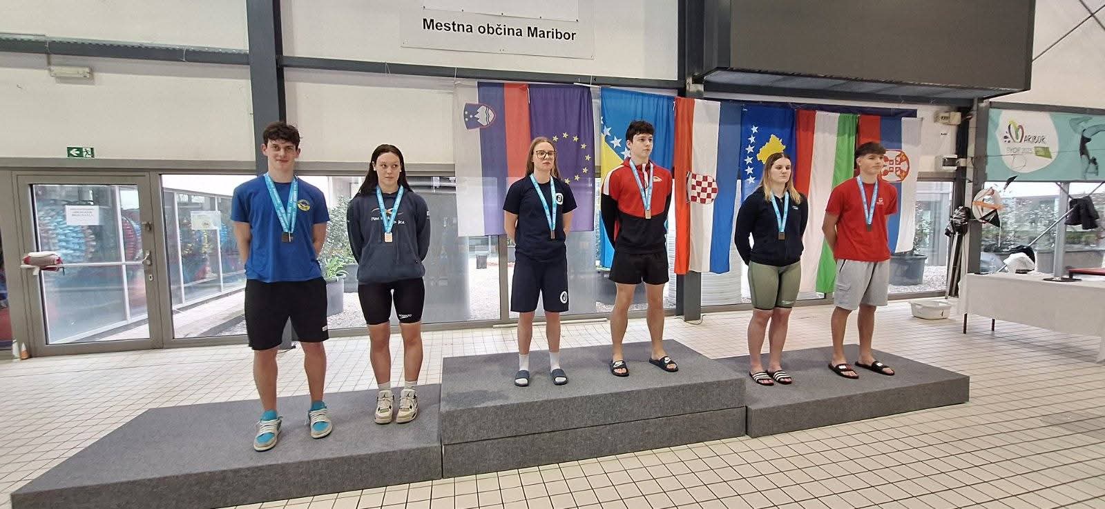 AIDAN ERMENC je v mladinski kategoriji osvojil srebrno medaljo v disciplini 50 m hrbtno ter bron na 50 m delfin z odličnim časom 27.68.