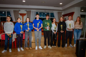 Večerni del dogodka se je nadaljeval z druženjem in slavnostno podelitvijo pokalov najboljšim plavalcem in plavalkam sezone 2024/2025. Pokale so prejeli: